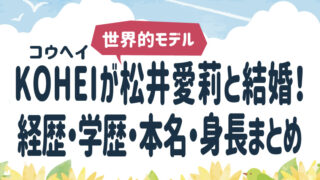 エンタメ モデルKOHEI(コウヘイ)が松井愛莉と結婚!経歴・学歴・本名・身長まとめ モデルKOHEI(コウヘイ)が松井愛莉と結婚を発表。経歴・学歴・本名・身長などプロフィールを詳しく解説。世界的モデルの魅力に迫ります。 2025.09.07 エンタメ