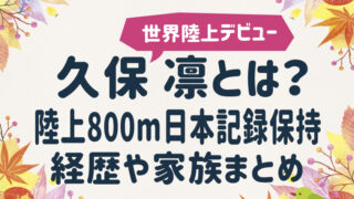 エンタメ 久保凛とは?陸上800m日本記録を出した経歴や家族まとめ 久保凛とは?女子800mで日本記録を樹立し、世界選手権代表入りした東大阪大敬愛高の17歳ランナー。経歴や学歴、家族(いとこは久保建英)までまとめました。 2025.09.15 エンタメ