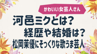 エンタメ 河邑ミクとは?経歴や結婚は?松岡茉優にそっくりな歌うま芸人 河邑ミク(かわむらみく)は松岡茉優に似ていると話題の芸人。R-1やTHE Wでファイナリスト経験あり、歌もうまく「鬼レンチャン」にも出演。経歴(元コンビ時代含む)や結婚、理想のタイプ、プロフィールを詳しく紹介。 2025.10.04 エンタメ